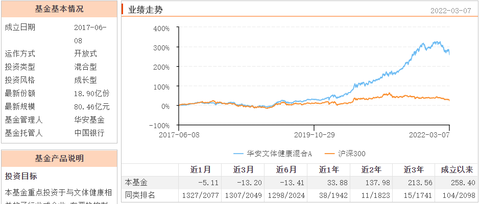 该基金成立于2017年6月,成立近5年,累计总回报达到258.4%,年化回报为30.85%。