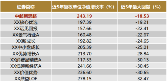 资料来源:Wind,截至2021/12/13国晓雯的代表产品中邮新思路不仅超额收益表现出色,在回撤控制和胜率表现方面也让投资人有良好的持有体验。在2021年9月由中国证券报评选的“五年开放式混合型金牛奖”基金中(剔除股票多空型基金),中邮新思路近5年最大回撤仅为-18.53%,回撤控制得很好。