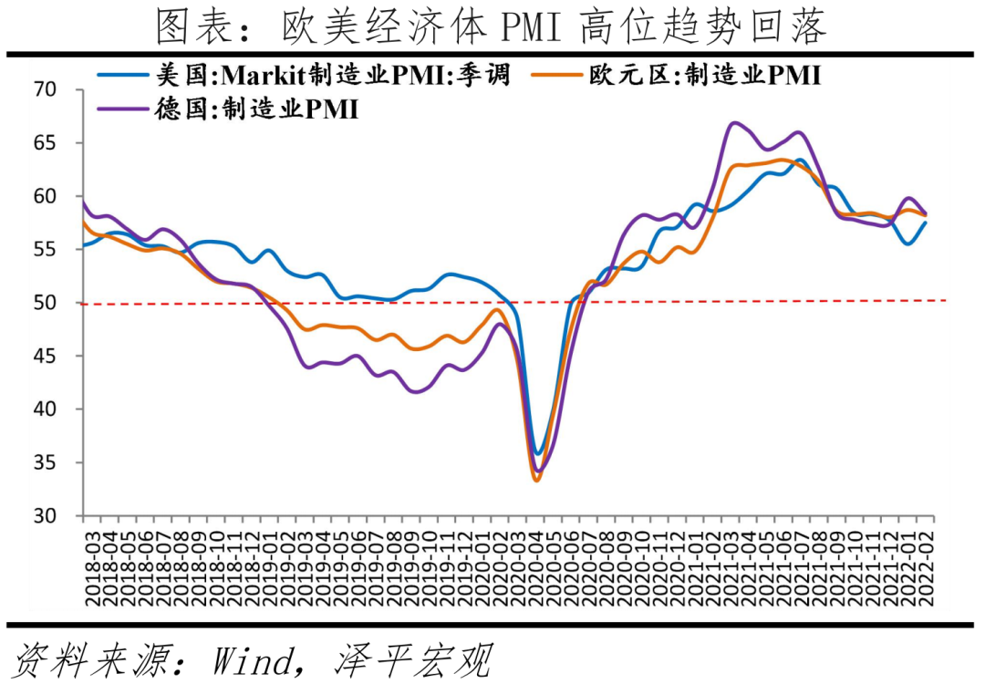 俄乌冲突使得美欧通胀形势雪上加霜。美国通胀创40年新高,受过去两年无上限QE、大宗商品供求缺口、供应链恢复缓慢等因素影响。1月,美国CPI同比7.5%,创40年新高,PPI同比增长9.7%,大超市场预期。1月,英国CPI同比达5.5%,创30年新高。预计欧美物价数据在2-3月将大幅攀升。中国也受到输入性通胀的冲击,2月PMI主要原材料购进价格指数和出厂价格指数分别为60.0%和54.1%,比上月大幅上升3.6和3.2个百分点。