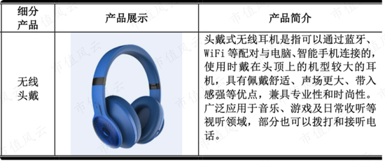 根据佳禾智能招股说明书介绍,自己是国内领先的电声产品制造商。上市时,公司的产品有耳机、音频线和音箱等各类电声产品。其中耳机有无线头戴耳机。