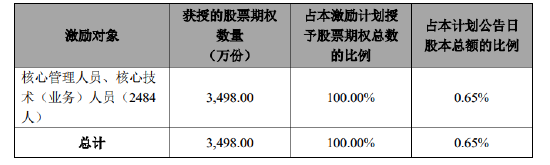 公告中提到,本激励计划拟授予的股票期权的激励对象总人数为 2484 人,限制性股票激励对象总人数为 27 人,包括:公司董事、高级管理人员、核心管理人员、核心 技术(业务)人员。