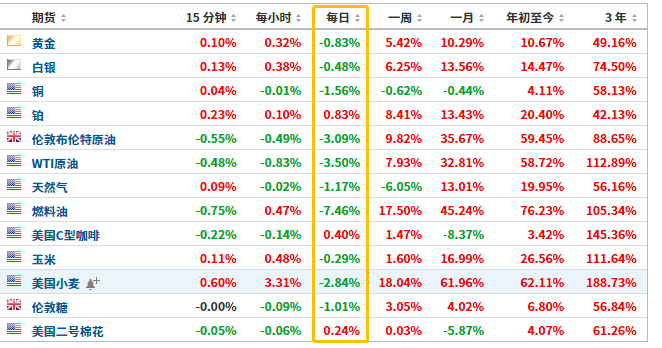 近期涨幅较大的原油、黄金等则出现一定幅度的调整。