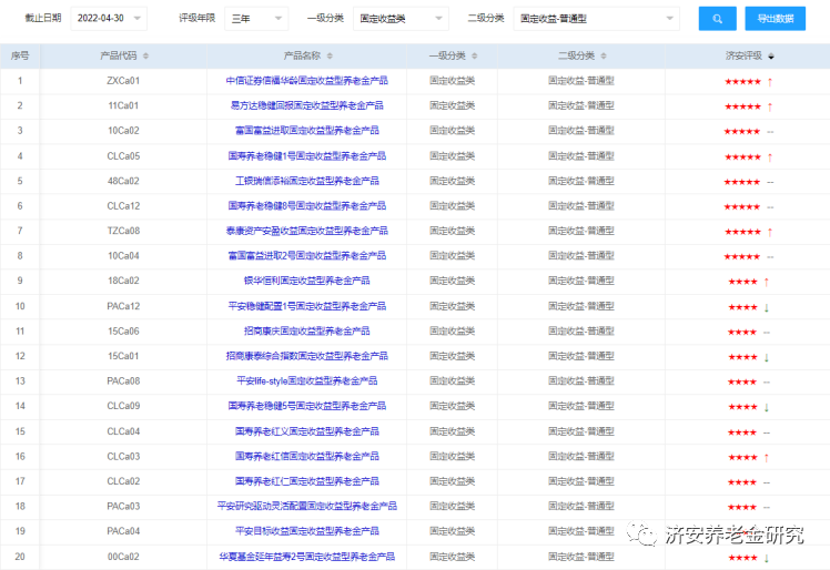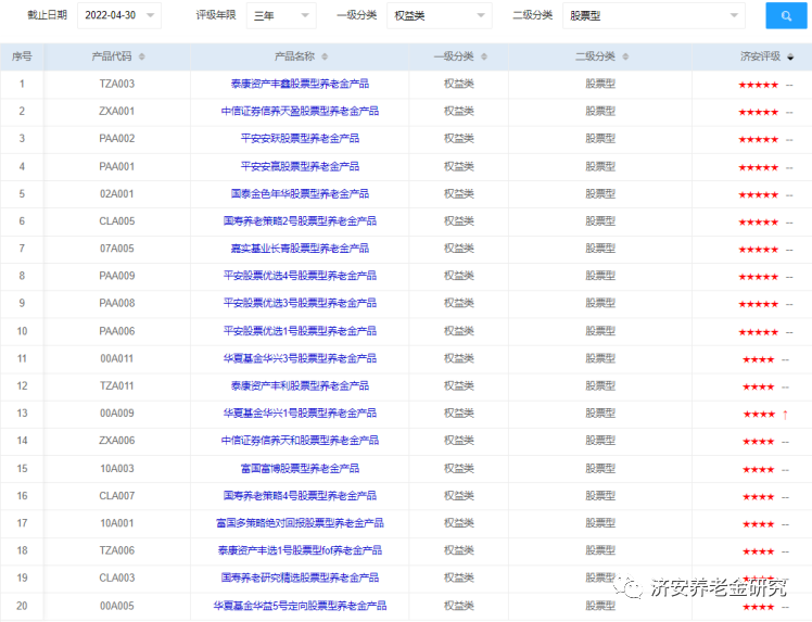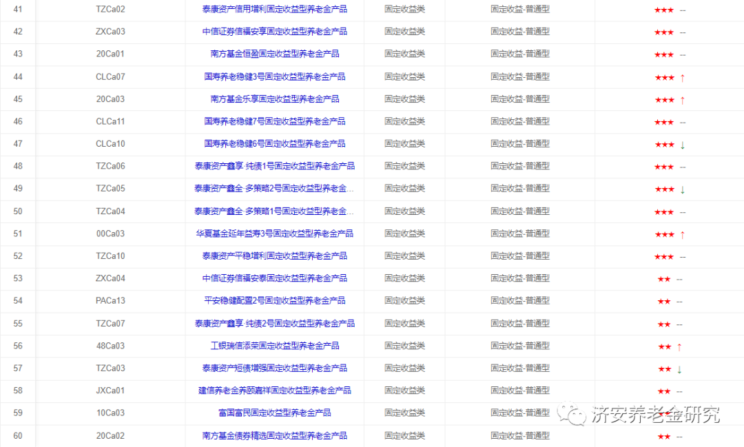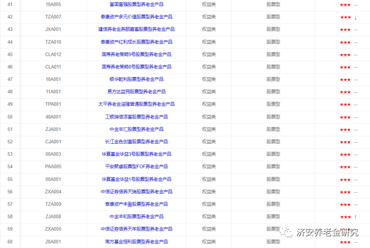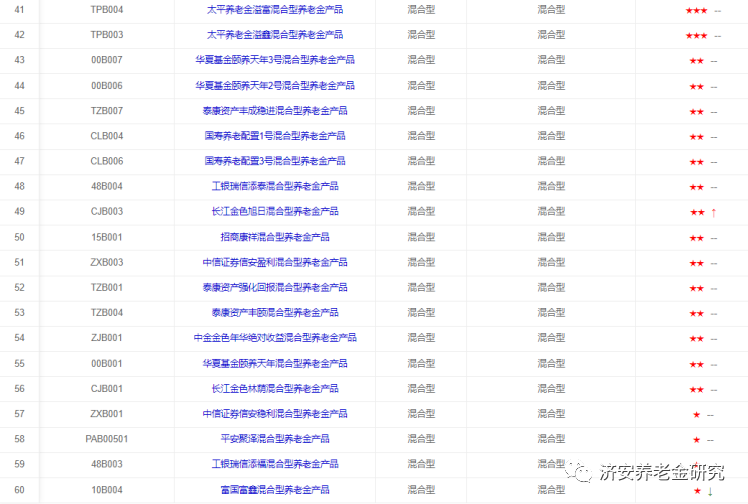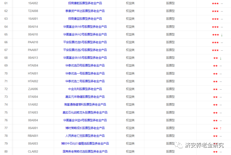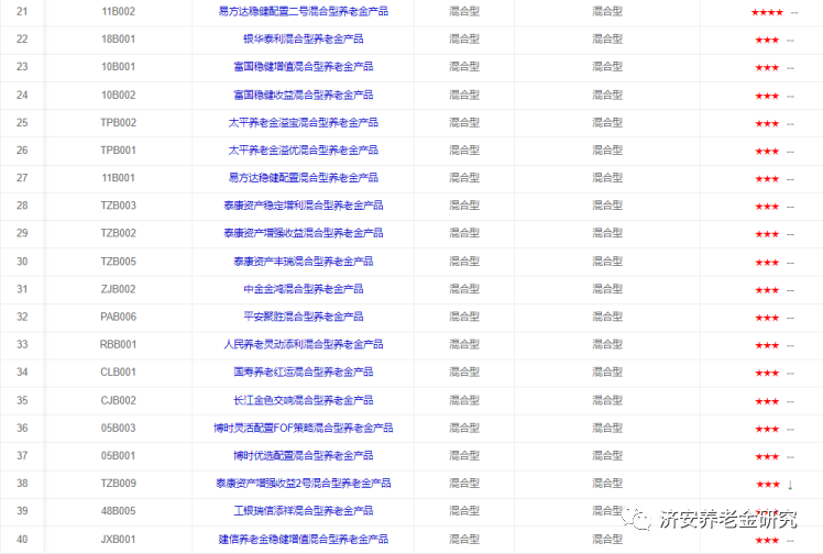 下面简单介绍这几类养老金产品的评级情况(同一星级养老金产品排序不分先后)。