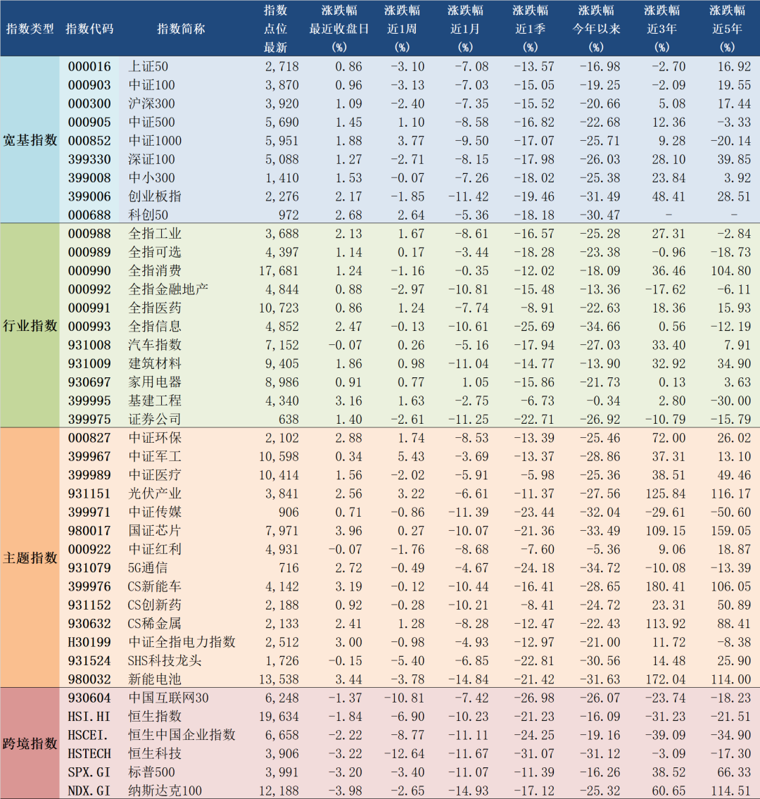 2022年5月10日A股主要指数估值表