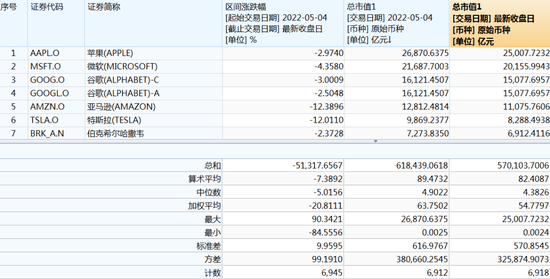5月7日,美股再度大跌,主流科技龙头惨遭大甩卖,8大科技巨头年内平均蒸发2.3万亿元市值,相当于跌掉1个茅台。