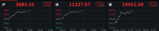 和美股不断调整不同的是,A股港股近期持续狂飙,今日涨幅更大,截止沪深股市午盘,沪指涨1.63%,深指涨近3%,港股逼近2万点。