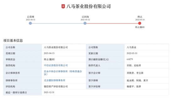 5月10日晚间,深交所官网显示,由于八马茶业申请撤回发行上市申请文件,决定终止对其创业板IPO审核。就在半月前的4月26日,八马茶业刚刚回复第三轮审核问询。
