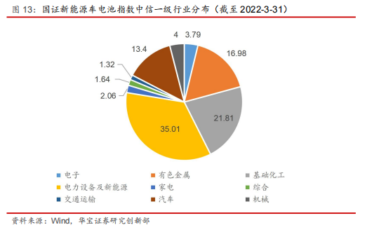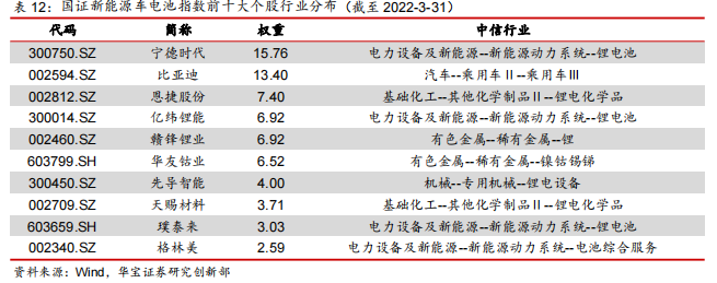 从指数前十大个股来看,其中信三级行业覆盖锂电池、锂电化学品等多个子领域,涵盖电池产业链的多个环节。