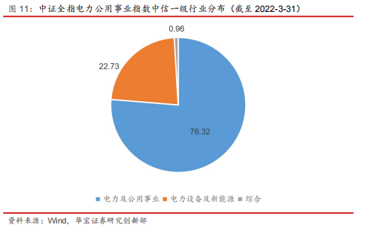 从其在中信一级行业上的分布来看,电力及公共事业行业占比为76.32%,是指数的主要组成部分,电力设备及新能源行业的占比为22.73%。此外,在综合行业有少量分布。