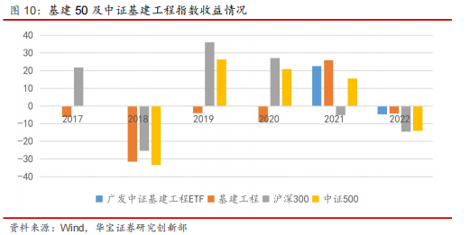 从业绩表现上看,受市场风格影响,前几年证基建工程指数持续跑输大盘,表现不佳。而2022年,在宏观经济以“稳增长”为主线的背景下,基建迎来新一轮发展机遇,相关标的也走出了较好的行情。
