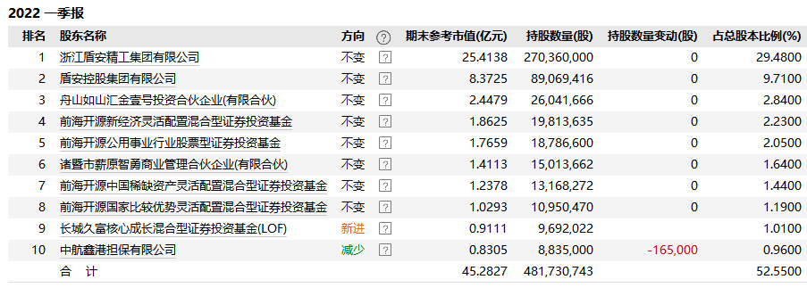 目前,盾安环境也因其新能源发展前景受到公募青睐。截至今年一季度末,盾安环境前十大股东中有5只公募基金产品,其中第四、五大股东分别为前海开源新经济、前海开源公用事业,均由2021年权益基金业绩冠军崔宸龙管理。第七、八大股东为前海开源中国稀缺资产、前海开源国家比较优势,均由另一位前海开源明星基金经理曲扬管理。上述四只基金均是在2021年四季度新晋盾安环境前十大股东。第九大股东为长城久富,为今年一季度新晋前十大股东。