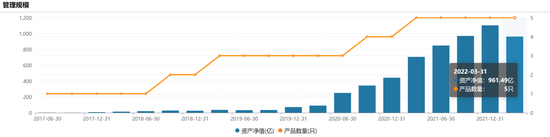 作为曾经的“千亿俱乐部”中的“后起之秀”、同时也是曾经管理规模最大基金经理的葛兰,目前在管的基金共有5只,分别是中欧研究精选、中欧阿尔法、中欧医疗创新、中欧明睿新起点和中欧医疗健康。Wind数据显示,上述5只基金的管理规模为961.49亿元。