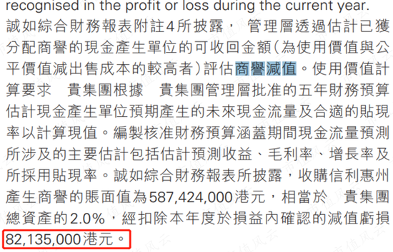 但正是这个极其重要的子公司,在2021年刚被纳入合并,商誉就减值了大约8200万港元。