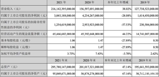 但在各项主要业务都较为稳定且有所增长的同时,其净利润尤其是扣非净利润竟然出现高达57%以上的跌幅。主要原因是营业成本的上升,另外这一年比亚迪大幅扩产能,在全国多个地方投资建厂,或将实现从三大生产基地至九大生产基地的扩张。财报数据显示,2021年比亚迪在建工程投入约202.8亿元,上一年该数据约61.1亿元。
