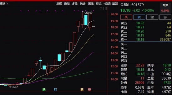 湖南发展会稽山东易日盛高位突发闪崩