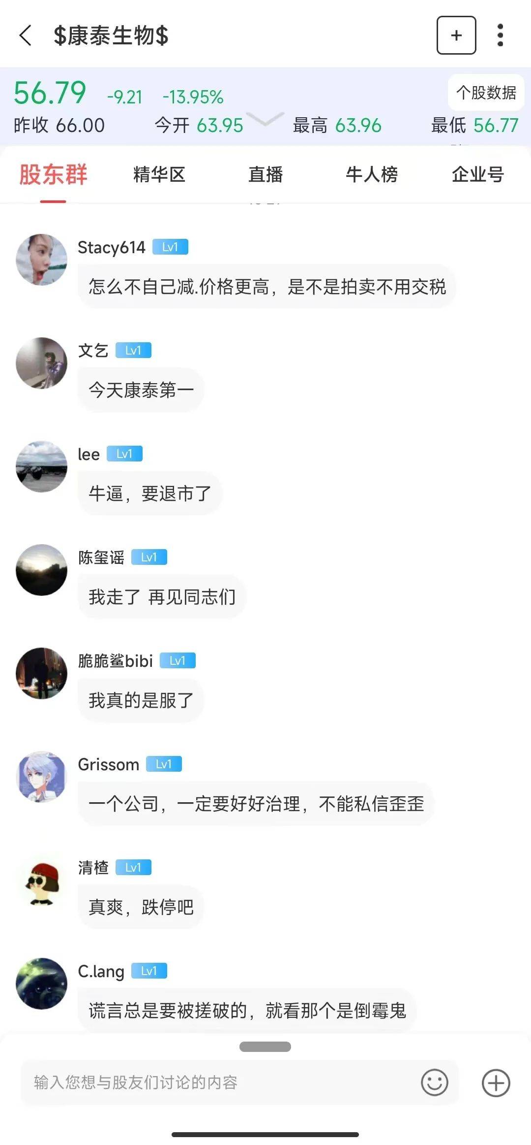 这一次,因淘宝拍卖股价大跌,引发股民热议。在尺度康泰生物股东群,有投资者称,杜伟民明明有几千万股的流通股,可以自己减持,如果无法减持,可以追加质押,现在什么都不干,宁可选择被司法拍卖,导致股价大跌,这是什么操作?请给股民一个交代。