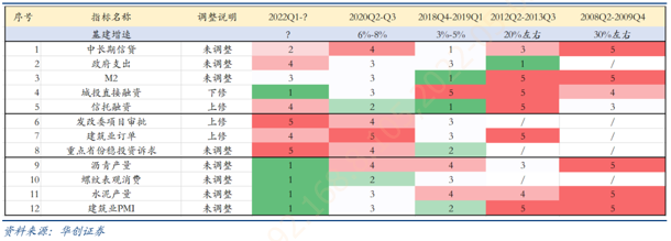 表1是对基建的12个指标的更新(上修三个指标,下修1个指标),当下前8个指标(受地产影响较小)的总评分和2020年Q2-Q3相比已经持平。考虑到后续政策要求“抓紧谋划增量政策工具,加大相机调控力度,把握好目标导向下政策的提前量和冗余度”,预期全年基建增速可能至少保持在6%-8%的区间。(数据来源:Wind,华创证券研究所)