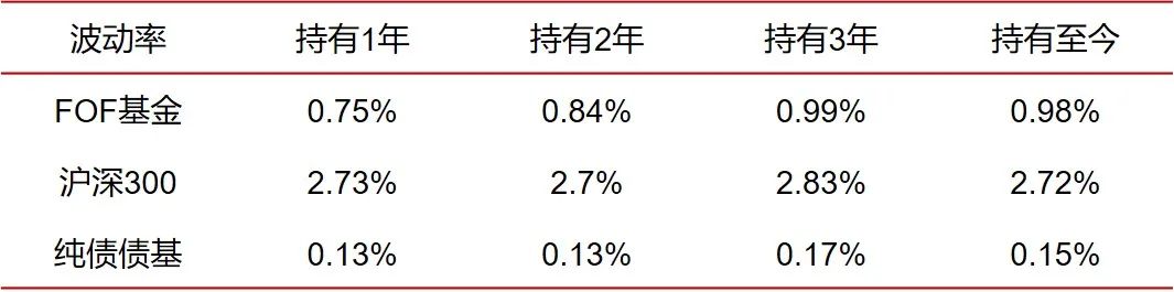 从上述波动率的表格可以看出,FOF基金指数的波动率大幅优于沪深300。