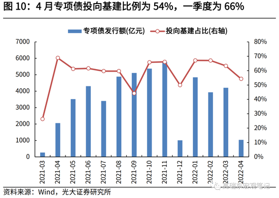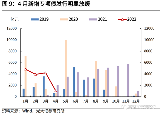 三是,4月发债节奏放缓,也对地方政府性基金支出带来一定拖累。4月新增专项债仅发行1000亿元左右,而一季度,新增专项债发行1.25万亿元。随着5、6月份专项债发行加快,预计政府性基金支出增速会有明显改善。
