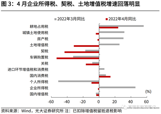 4月一般公共预算收入同比-41.3%,扣除留抵退税影响,同比为-4.9%,3月同比为3.4%;