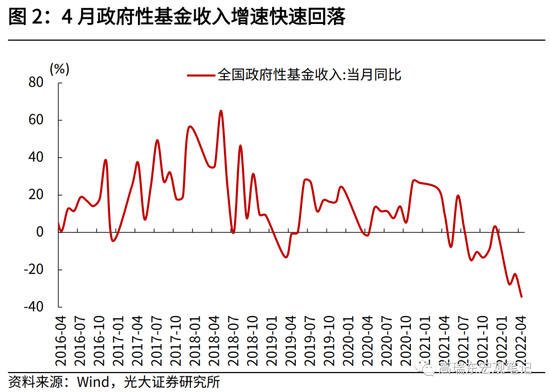 4月政府性基金预算收入同比-34.4%,3月同比为-22.2%;