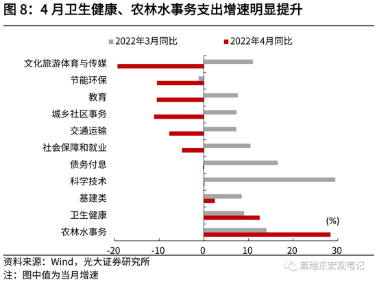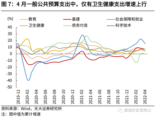 一是,疫情管控导致相关活动受限,财政暂缓支出。例如教育、基建类支出增速自上月的7.6%、8.5%分别回落至-10.5%、2.4%,这与2020年3月情景较为相似。