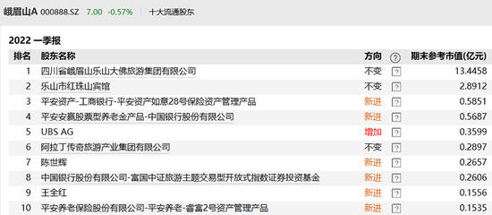 此外,一季度,陈世辉还新入了另外一只旅游股峨眉山A的股东榜,期末持有339万股,市值约2600万元。