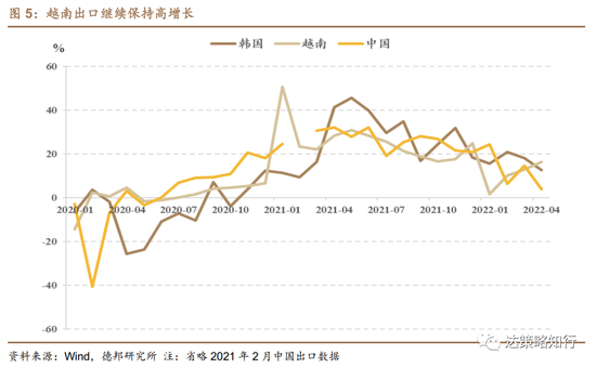 出口回落的原因可能有三:1、全国疫情的多点散发,物流不畅,使得各产业供应链受阻,进而影响到了生产交付;2、美国等发达国家货币政策正常化,经济活动有所放缓,需求量出现萎缩;3、越南等国由于其廉价的劳动力成本,争夺出口份额。