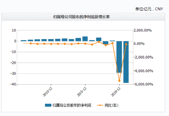 从公司业绩来看,公司近两年出现巨额亏损,总额约68亿元,而公司此前十年的净利润之和还不到20亿元。扣非净利润方面,2018年至2021年,分别为-2.73亿元、-4.26亿元、-27.19亿元、-25.10亿元,已连续四年为负。