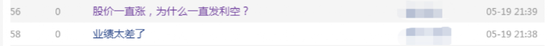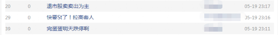 而在5月19日晚公告发出后,股吧也瞬间炸了锅,一投资者发出灵魂拷问:“股价一直涨,为什么一直发利空?”此外,不少投资者们猜测股价或将跌停,还有的表示“回本的赶紧撤”。