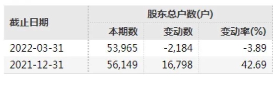 Wind显示,截至2022年3月31日,中利集团股东总户数为53965户,相较于上期减少了3.89%。