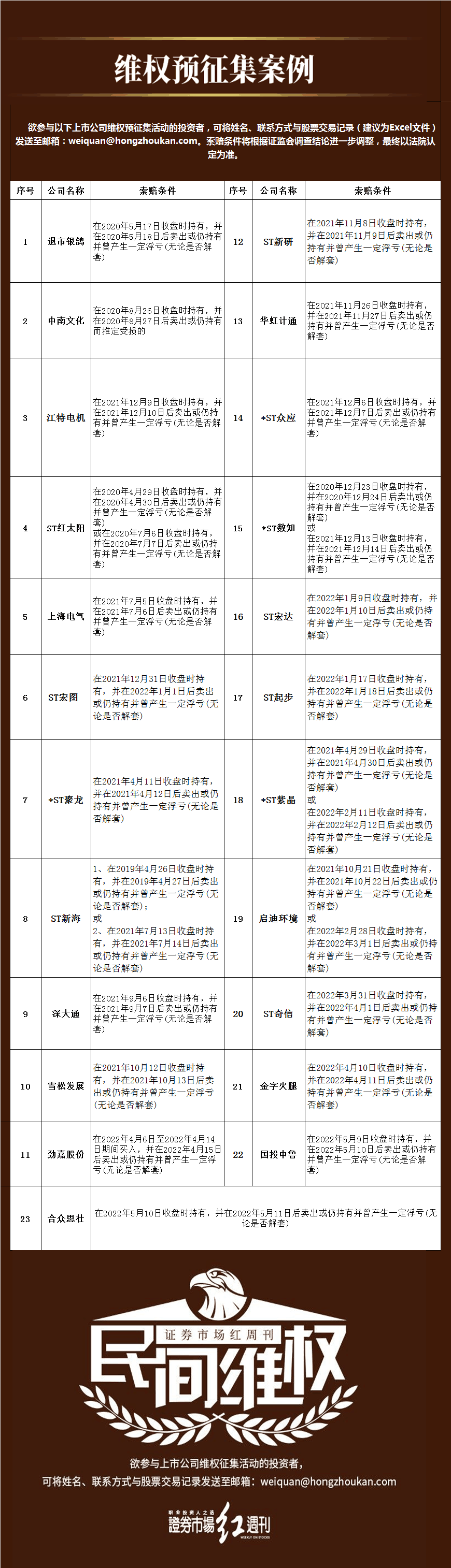 欲参与上市公司维权征集活动的投资者,可将姓名、联系方式与维权个股交易记录发送至邮箱: