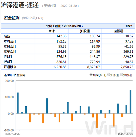 5月20日,北上资金净买入142.36亿元,本周净买入152.18亿元,本月净买入55.33亿元,从4月以来北上资金变动趋势来看,买入、卖出交替出现,今日大幅净买入后,资金流向趋势或将发生转变。