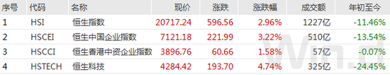 不仅A股全线反弹,港股同样大幅飙升。5月20日,港股高开高走全天强势,恒生指数收涨2.96%报20717.24点,恒生科技指数涨4.74%报4284.42点,恒生国企指数涨3.22%报7121.18点。大市成交1226.68亿港元,南向资金净买入2.22亿港元。医药、科技、能源板块涨幅居前,药明生物涨近8%领涨蓝筹,小米绩后涨6%,京东、阿里巴巴涨近6%。教育、电子烟概念走强,新东方涨超13%,思摩尔国际涨超8%。