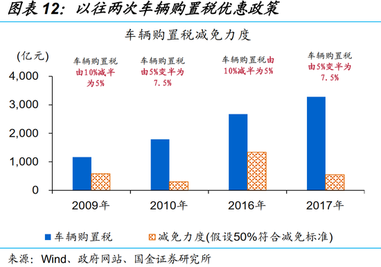不同于地方促消费,中央出台全国层面促消费措施,可以突破地方财力等约束,力度往往较大。地方促消费措施,会受到地方财力、地区消费产业结构等约束;尤其在当前地方财政收入明显承压下,中央出台促消费措施或可突破相关约束。以史为鉴,中央出台的全国层面促消费措施力度往往较大,重点支持一些消费金额较大的耐用品,例如,全国首轮家电下乡、过去两次汽车购置税优惠等措施。