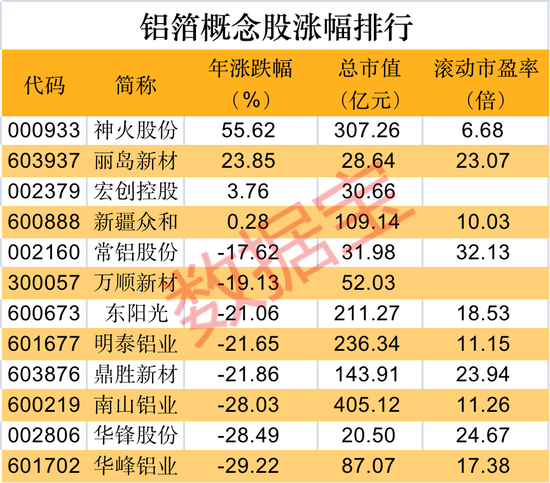 神火股份1月29日在投资者互动平台表示,公司目前铝箔产能为8万吨。南山铝业高性能动力电池箔产品年产总量3万吨左右。