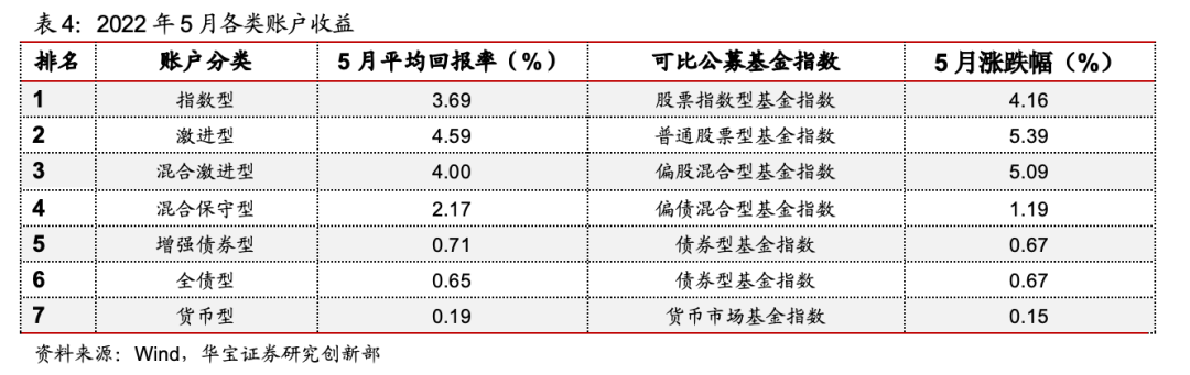 2022年5月排名体系内账户共217个,全月投连险账户单月平均收益2.22%。