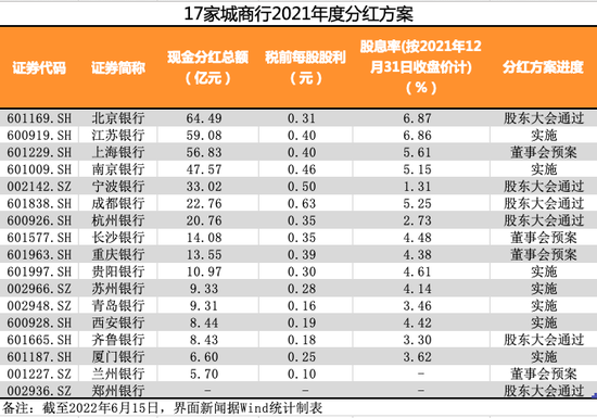 接下来,其余已发布分红实施公告的3家银行,包括南京银行、西安银行和厦门银行,也将分别于6月16日、6月19日和6月20日分红派息。