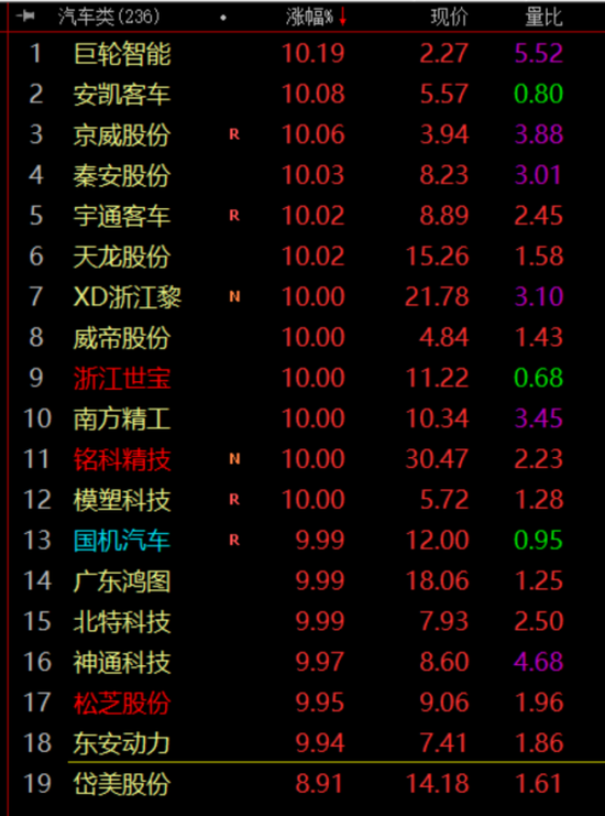 汽车:浙江世宝8连板,松芝股份4连板,国机汽车4天3板;