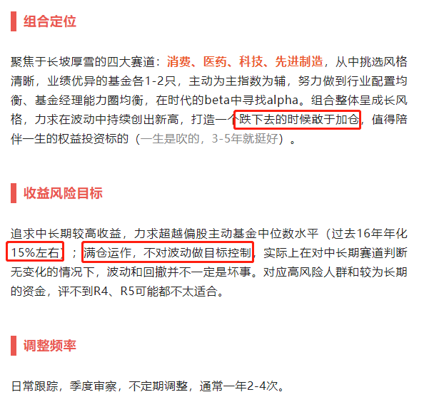 这个组合,一开始是为了我自己投资方便而设立的,并没有考虑把他作为一个“产品”去推广,平时我讲的也很少,只有在自己加仓的时候会在圈子里吼一声。所以幸而得到一些朋友的关注,诚惶诚恐,故务必提示:如果你风险承担后能力低,或者不认可上述理念,千万不要碰这个组合。