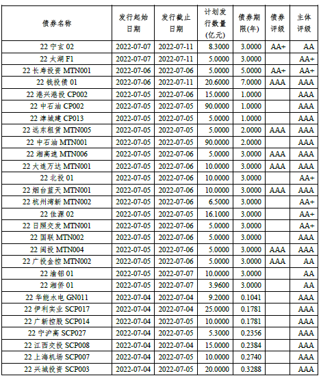 上周取消发行7只债券,取消发行规模合计33.1亿元。