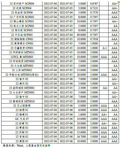 (3)央行货币政策委员会召开2022年第二季度例会。会议指出,要按照“疫情要防住、经济要稳住、发展要安全”的明确要求,统筹抓好稳就业和稳物价,稳字当头、稳中求进,强化跨周期和逆周期调节,加大稳健货币政策实施力度,发挥好货币政策工具的总量和结构双重功能,主动应对,提振信心,为实体经济提供更有力支持,稳定宏观经济大盘。进一步疏通货币政策传导机制,保持流动性合理充裕,增强信贷总量增长的稳定性,保持货币供应量和社会融资规模增速同名义经济增速基本匹配。在国内粮食稳产增产、能源市场平稳运行的有利条件下,保持物价水平基本稳定。维护住房消费者合法权益,更好满足购房者合理住房需求,促进房地产市场健康发展和良性循环。
