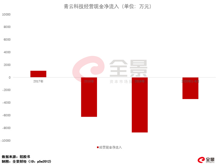 而且,公司并没有自己造血的能力。2017-2019年度及2020年上半年,公司经营活动产生的现金流量净额分别为1051万元、-6239万元、-8700万元及-3406万元,呈现持续净流出的态势。