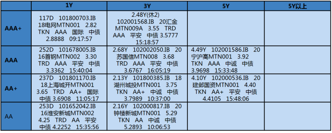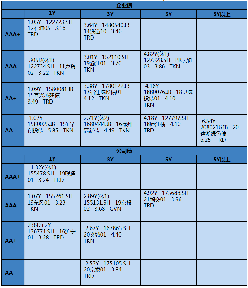 今日公司债企业债交投活跃,整体收益小幅下行,成交多在估值减1-3bp,需求主要集中在1年优质AAA品种。