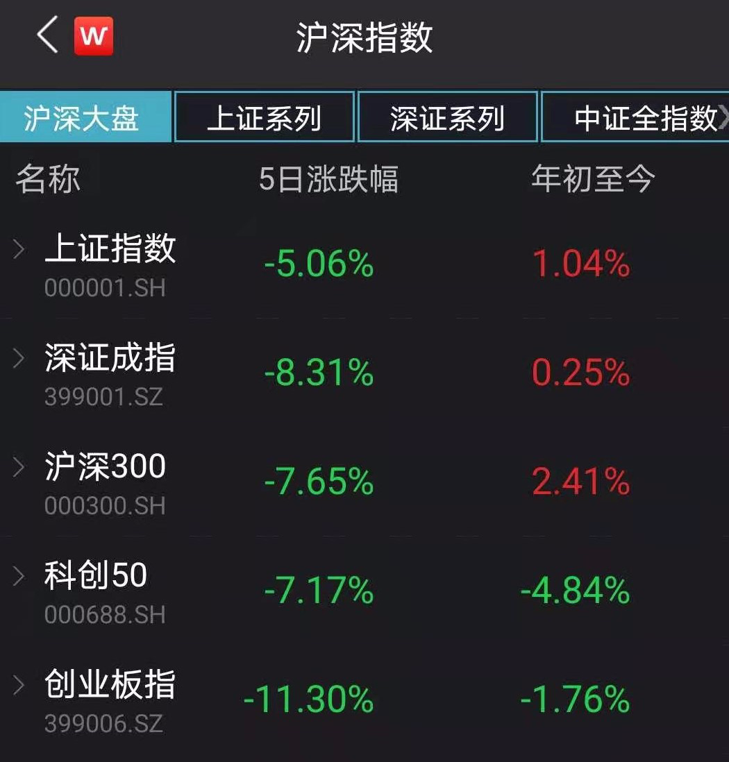 在上周续创近5年新高后,本周(2月22日至2月26日)A股三大股指持续处于回调状态,上证指数、创业板指现百点长阴,深证成指全周跌幅更是超过1300点。