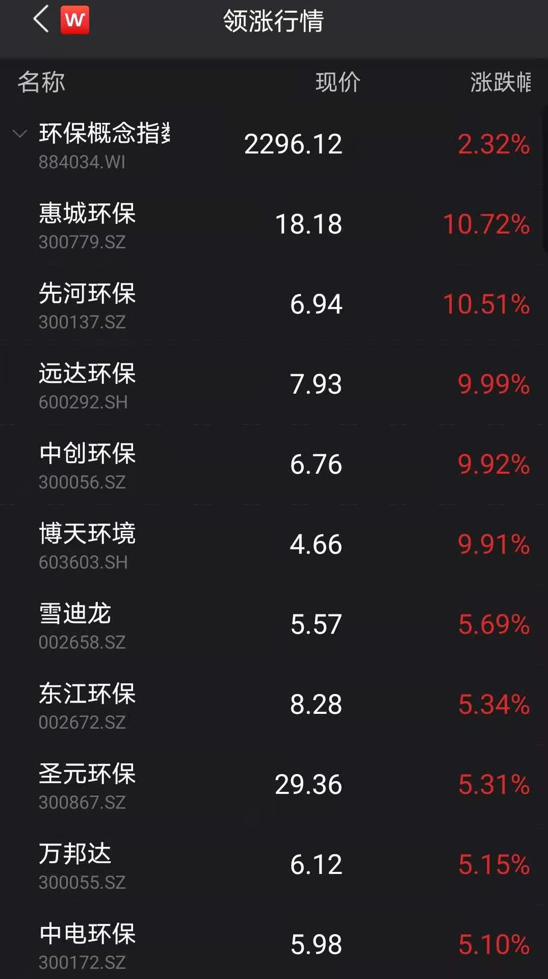 环保板块逆势走高