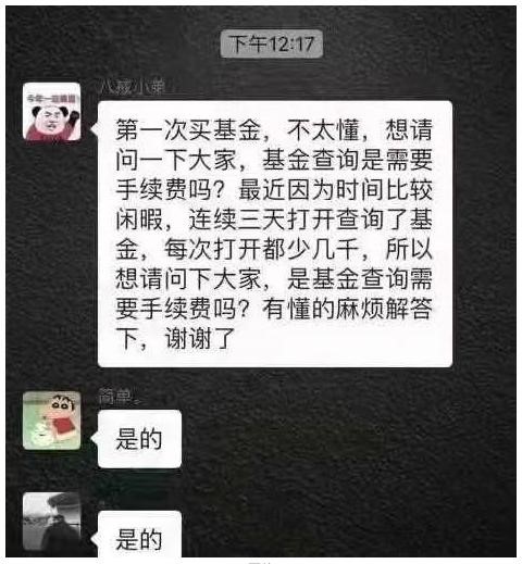有基民称自己第一次买基金,由于每次打开账户都发现少了钱,因此在群内请教其他基民,是否查询基金也需要手续费。