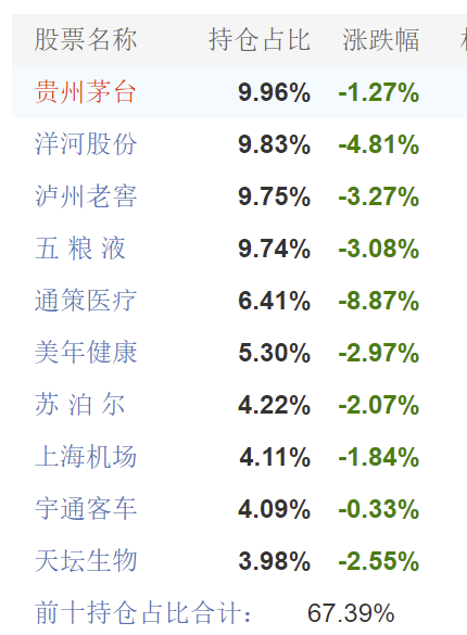 易方达中小盘前十大重仓股分别为贵州茅台、洋河股份、泸州老窖、五粮液、通策医疗、美年健康、苏泊尔、上海机场、宇通客车、天坛生物。