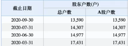 截至2020年9月30日,尚有股东户数1.35万余户。
