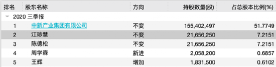 截至2020年三季报,江珍慧仍是公司第二大股东,持股占公司总股本7.21%。
